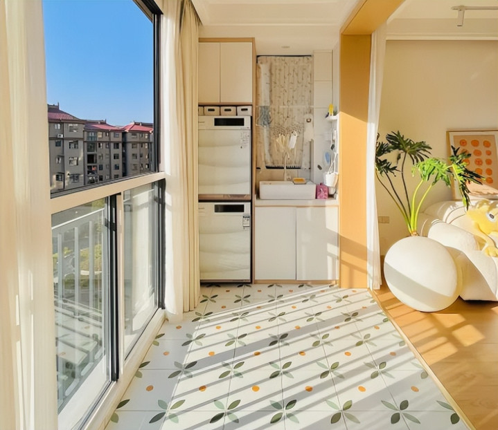 阳台装修并不复杂,人人没必要去跟风作念微水泥墙面,最简略的装修方法如故用瓷砖上墙的花式,防水好打理,看着也相称温馨、耐用。