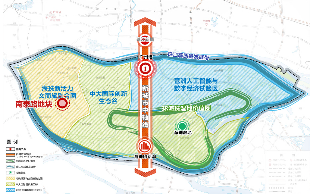 地块原为区内最大的百货批发市场——南泰食物批发市场。神情见地以周转中心城区低效能地、促进区域升级为导向,优化海珠西部交易办事功能,促进片区产城会通,激勉文商会通发展新活力。